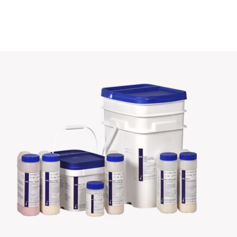 琼脂、脱水培养基、添加剂、胨、水解化合物自1935年以来,BD公司微生物产品部门一直从事各类培养基的生产,目前在市面上销售超过250种产品。产品包装从每瓶100g、500g、1 lb的小包装,到每桶2kg、10kg、5 Ib、25 lb的大包装,可满足实验室的不同需要。每一批脱水培养基出厂前,成份需经过严格测试,确定达到营养标准并具有优良的物理特性,并通过最终的测试,以确保培养基的高品质性能(High-Quality Performance)。公司可提供多种工业用培养基产品,以及APHA组织针对食物、饮料、化妆品、农业产品、水、废水的微生物测试所推荐的产品配方。由于每一批出厂的脱水培养基都经过严格的测试确保品质,我们在全球范围内,可甚至超过各微生物实验室(如食品、乳制品、水、制药、化妆品企业)的工作要求,非常适合于标本培养、快速检测的要求。